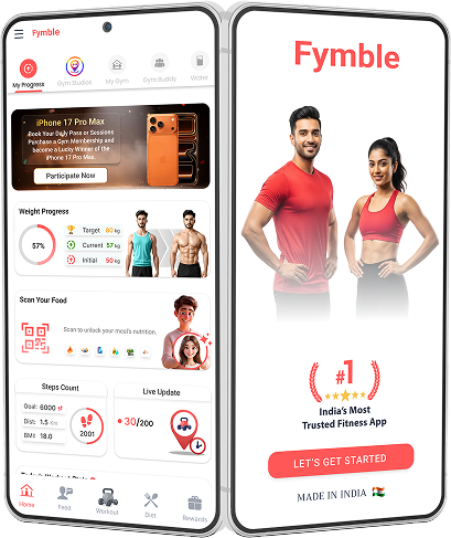 Train smarter with Fymble workout templates featuring guided exercise GIFs, real-time set and rep tracking, calorie burn insights, and saved workouts for continuous progress